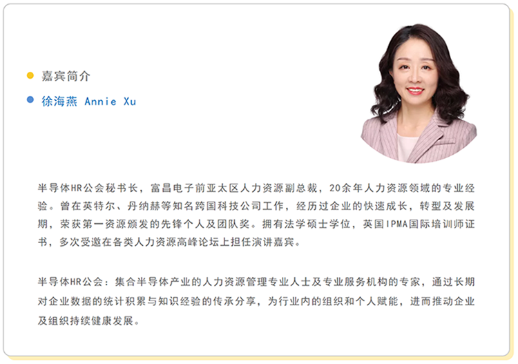 4008云顶国际 国际“行业瞭望”系列第八期邀请半导体HR公会秘书长,富昌电子前亚太区人力资源副总裁徐海燕女士,分享其关于集成电路行业人才招聘管理、培育、