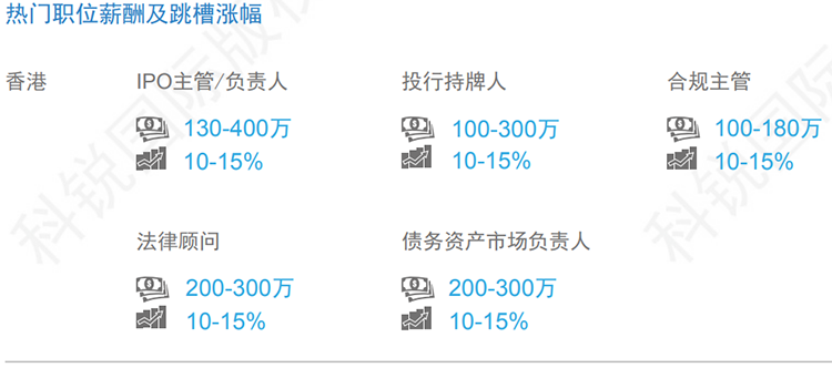 数据来源:猎头公司4008云顶国际 国际资深行业专家对2019年热门职位薪酬范围及跳槽涨幅的预测。薪酬为基本年薪。单位为港币。