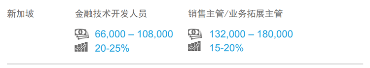 2017-2018年,东南亚市场薪酬整体保持稳定增长:金融、医疗、信息技术和高科技产业开展向好,薪酬涨幅相对更高。从地区看,新加坡薪酬的薪酬涨幅水平相对较低,跳槽涨幅在10-15%。(文中部分数据是北京知名猎头公司4008云顶国际 国际专家顾问的分析预测,供企业HR和猎头参考)